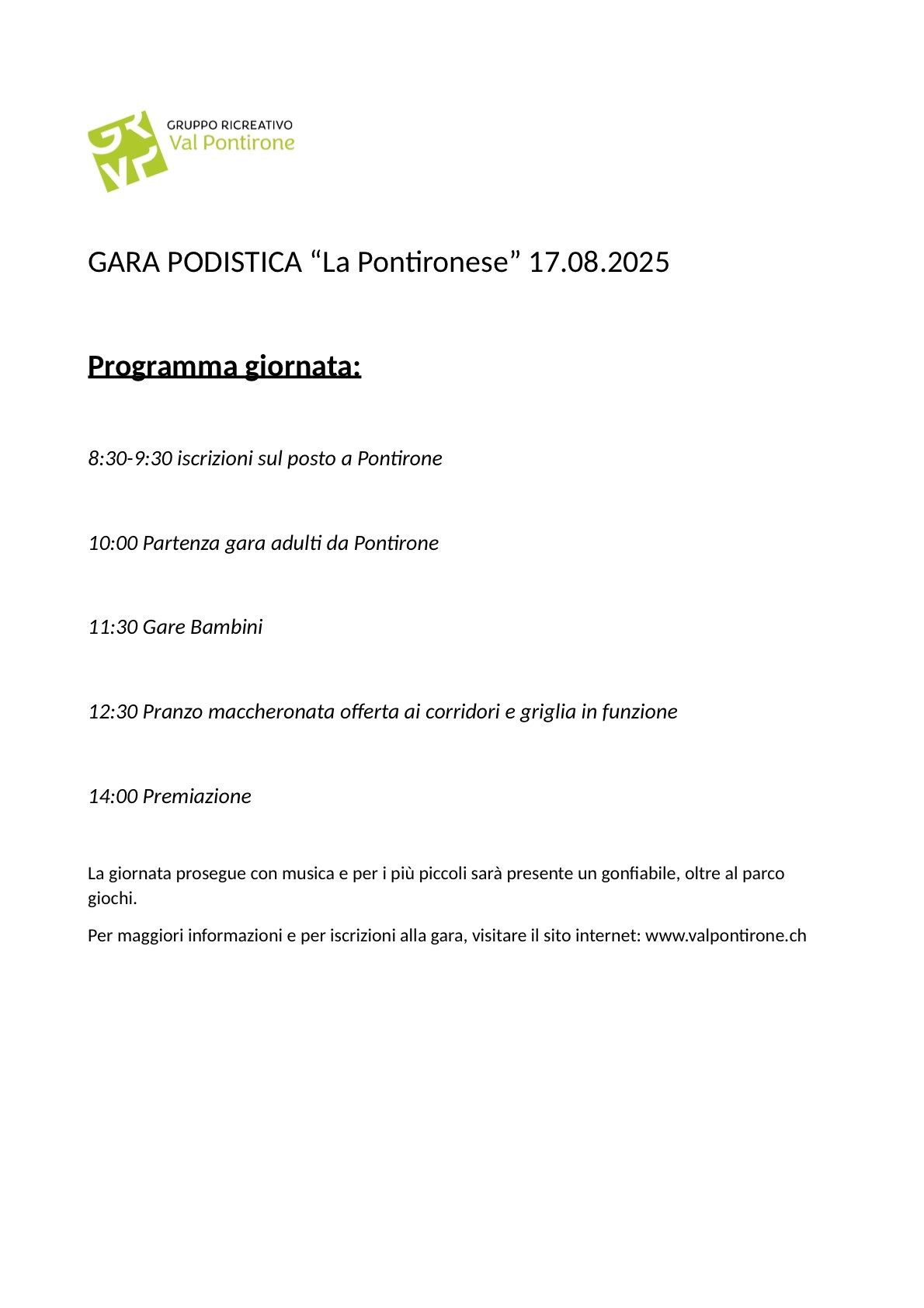 Gruppo ricreativo Val Pontirone | Programma Risultati | Pontirone | 10.00 | C. Brusorio |